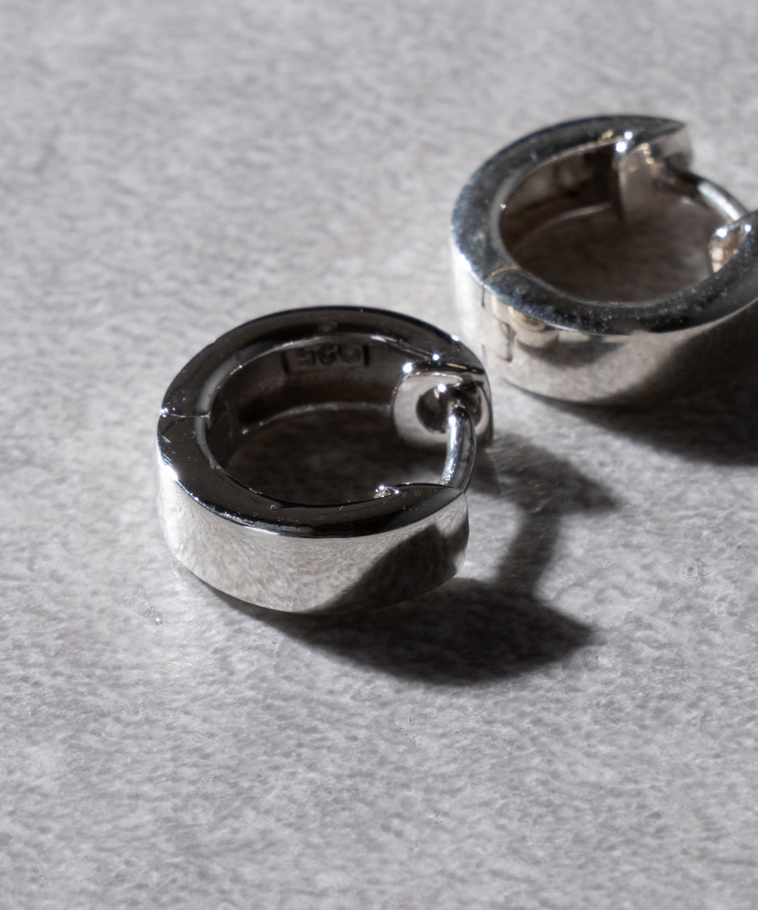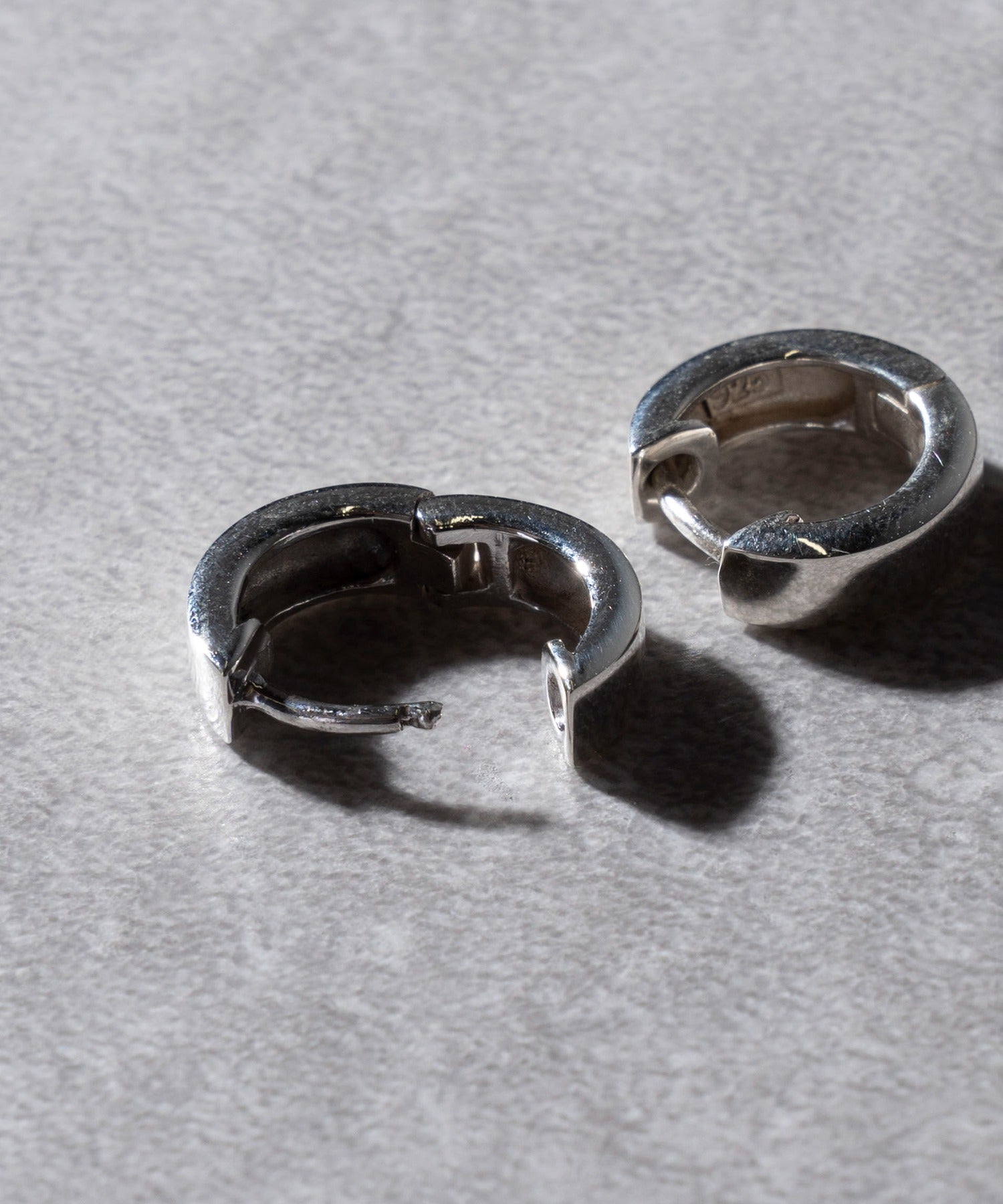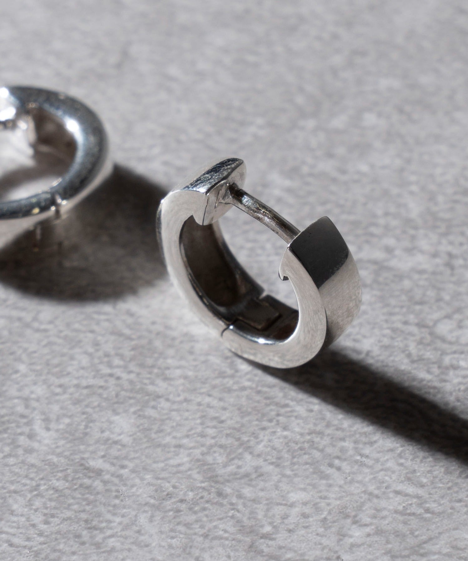 ・太くしっかり目でタフな印象のシルエットが特徴のピアス。