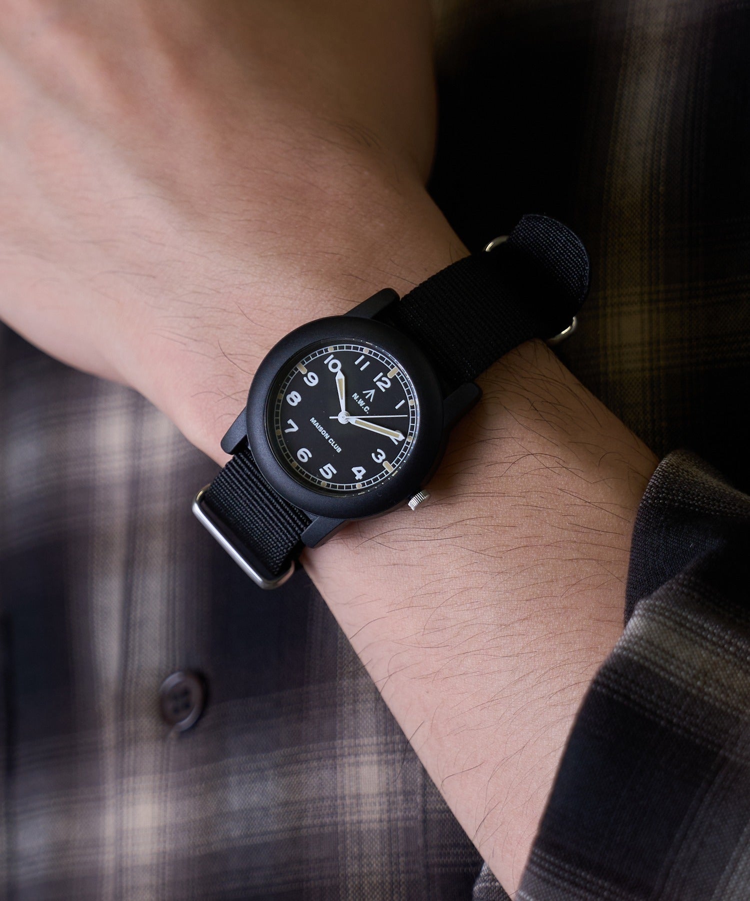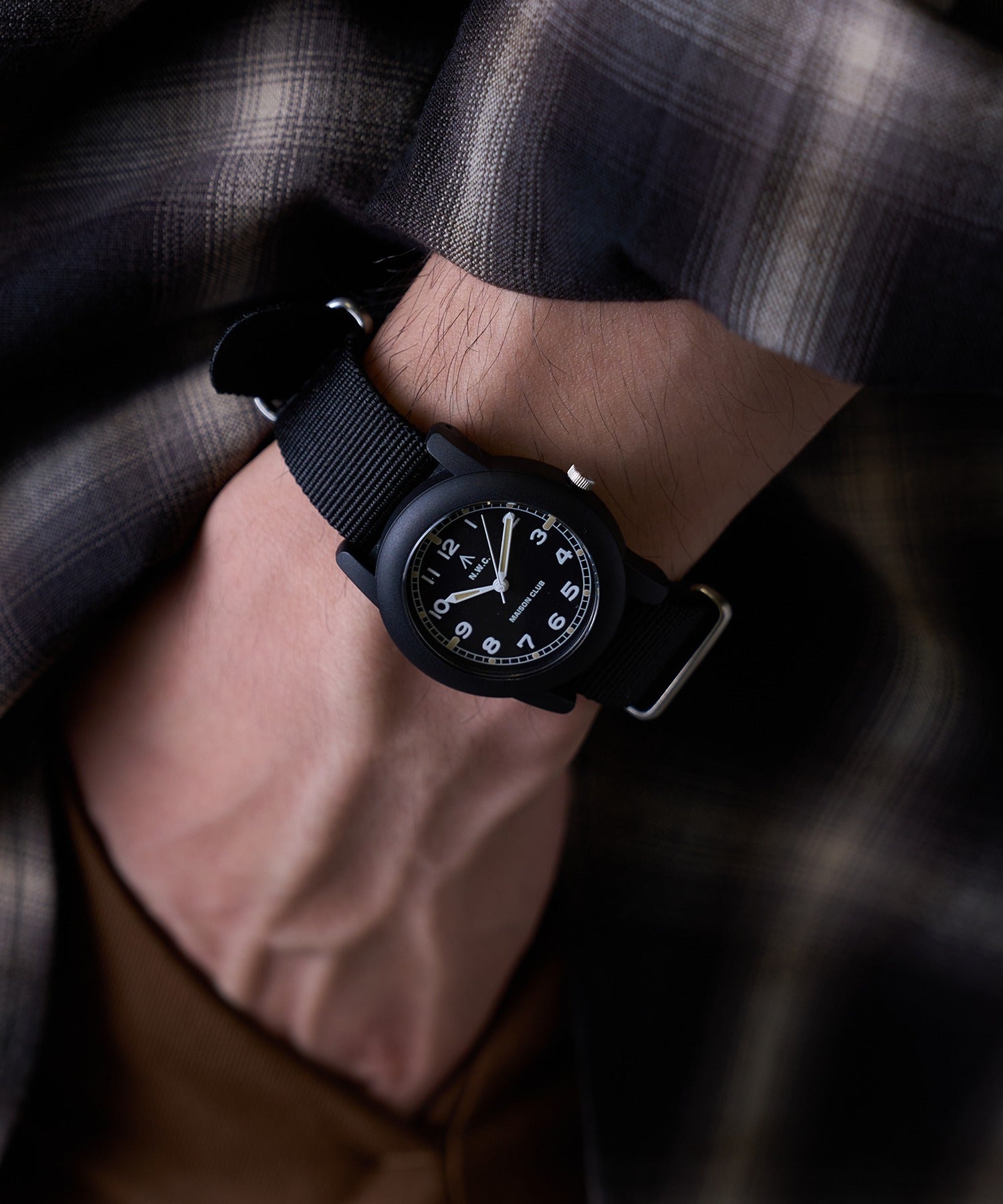 無駄のないミニマルなフェイスと、コーディネートに馴染むナイロンベルトが、ミリタリー由来の機能美を際立たせます。