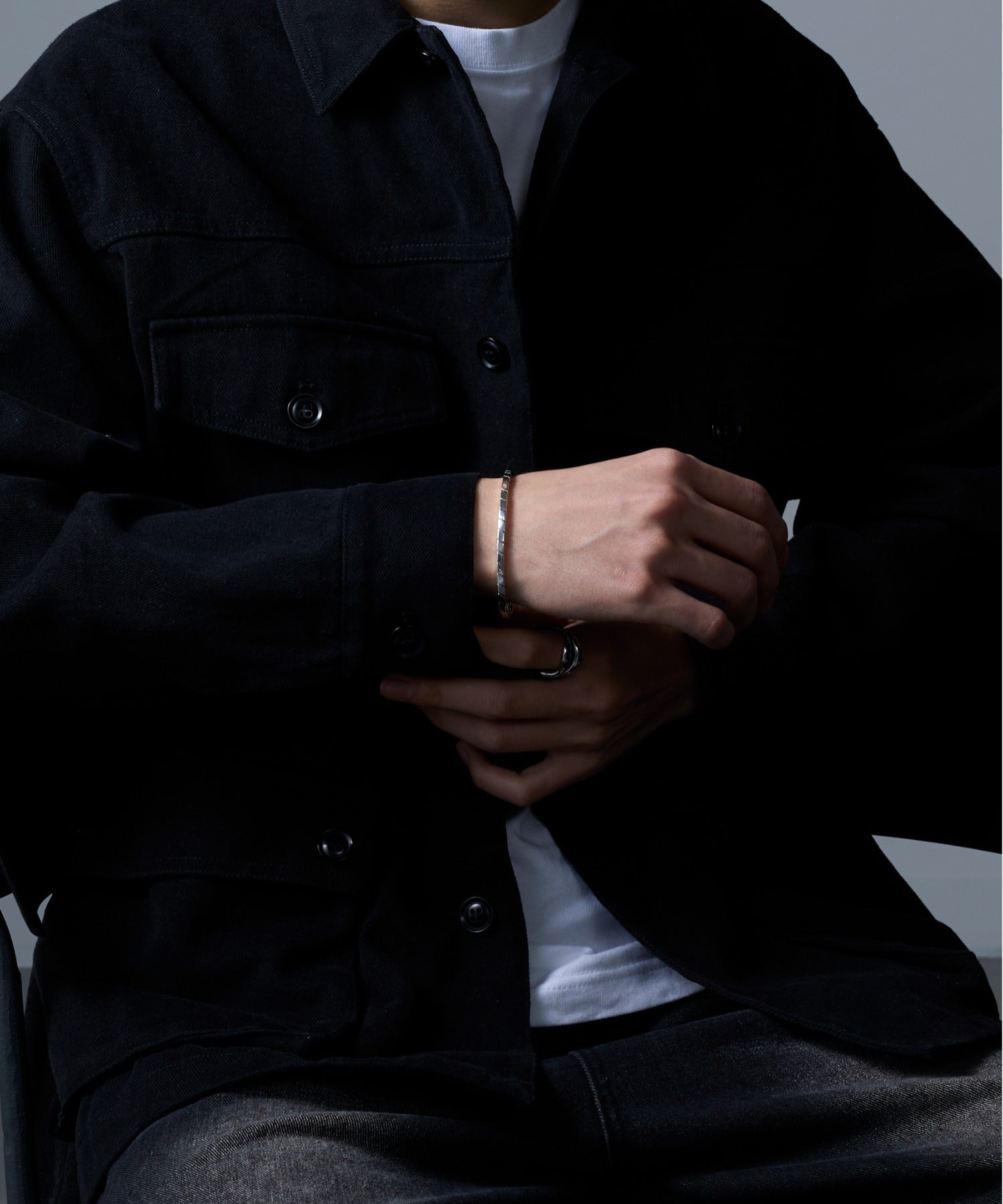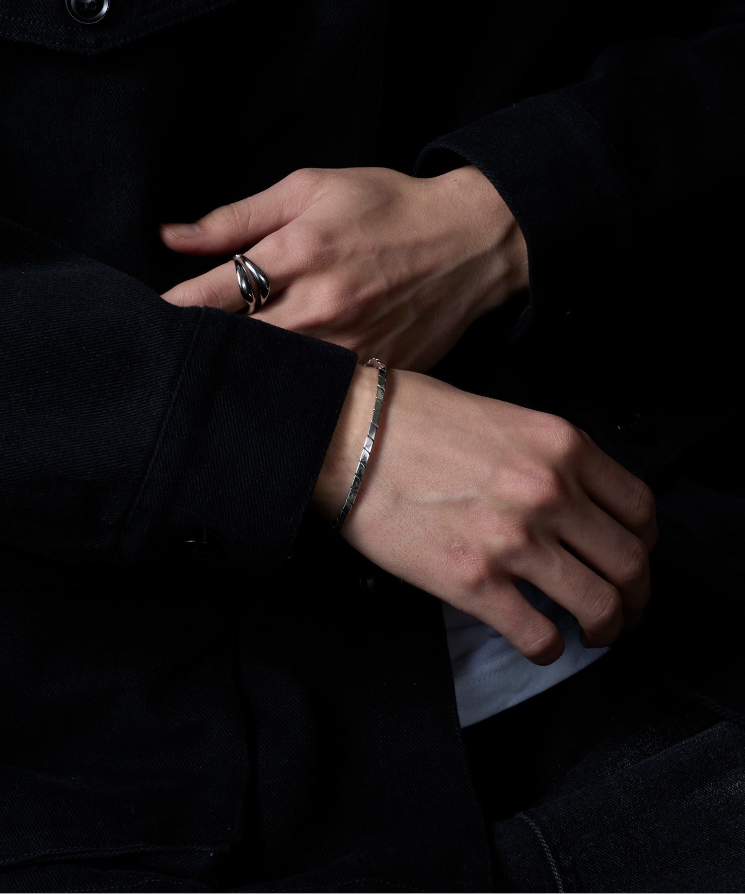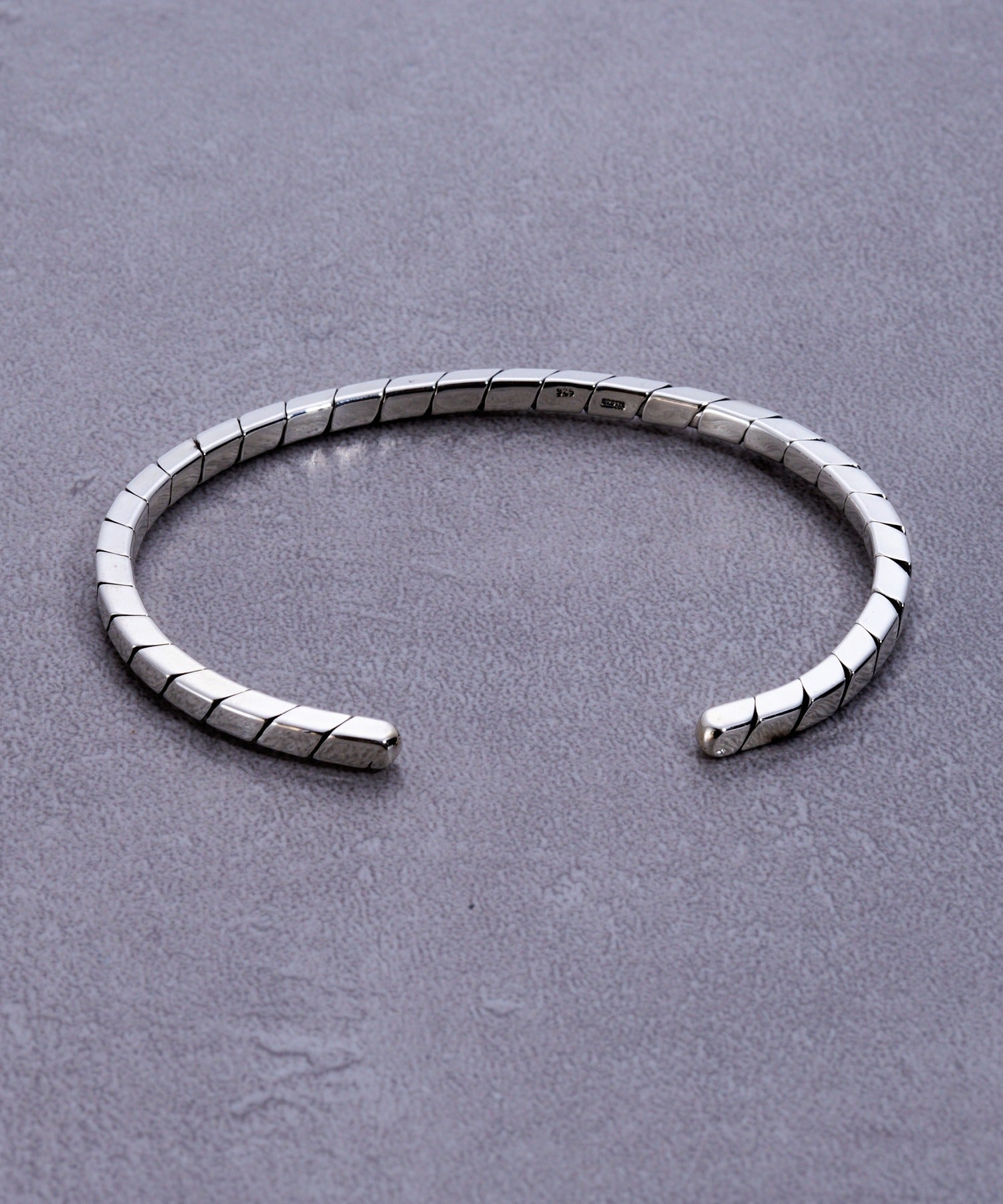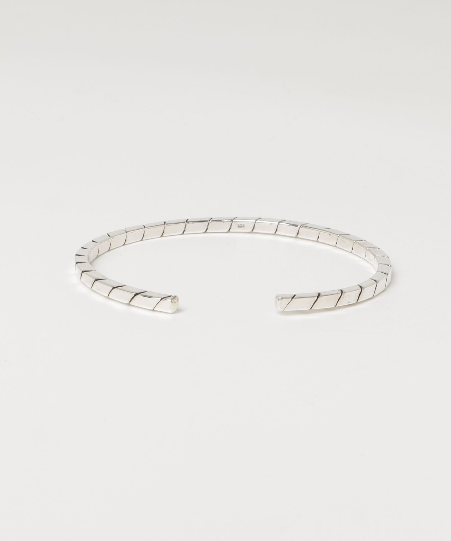 バイアスラインが手元に立体感を与え、ヴィンテージ感ある無骨さと繊細さを併せ持つデザインのバングル。