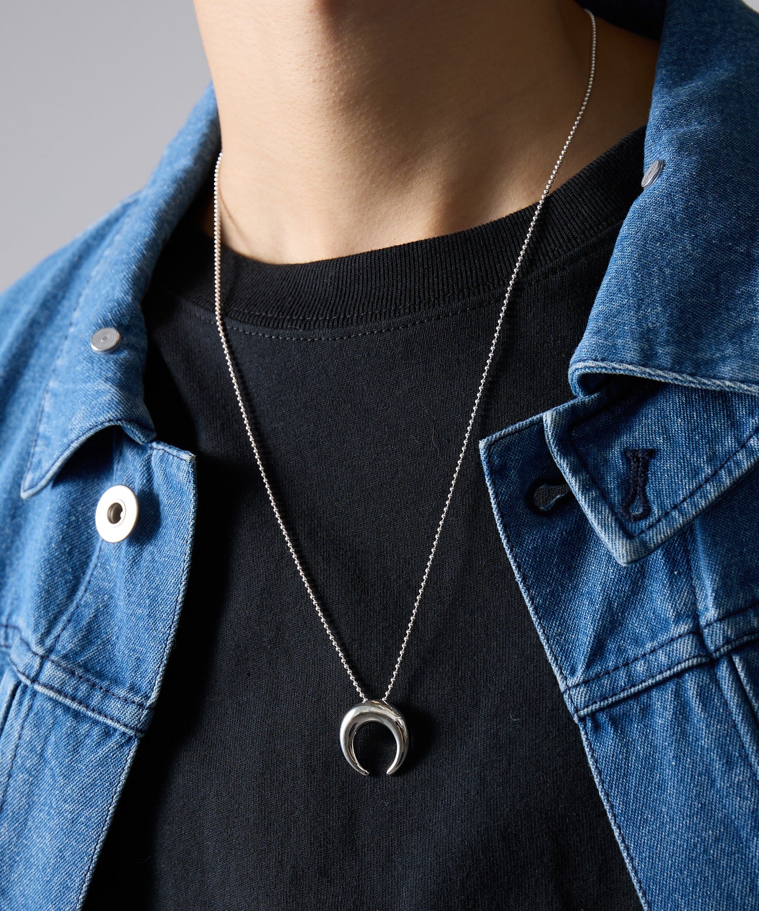 静かに輝く月をモチーフにした、ヴィンテージライクなシルバーネックレス。