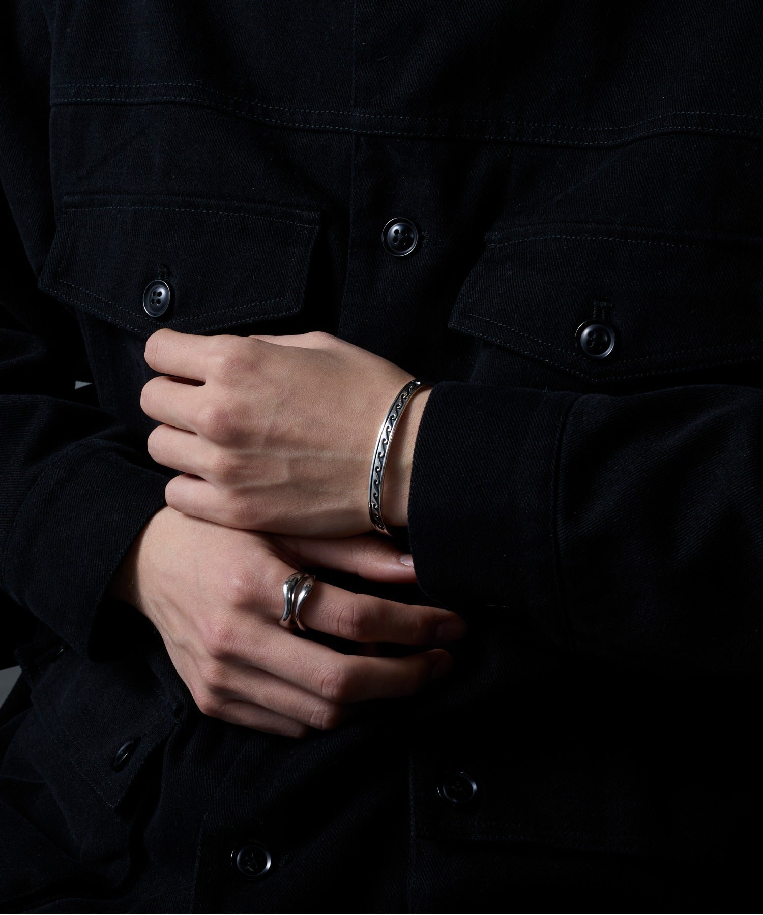 手元で個性を引き立てる、うねりのエッジングデザインのバングル