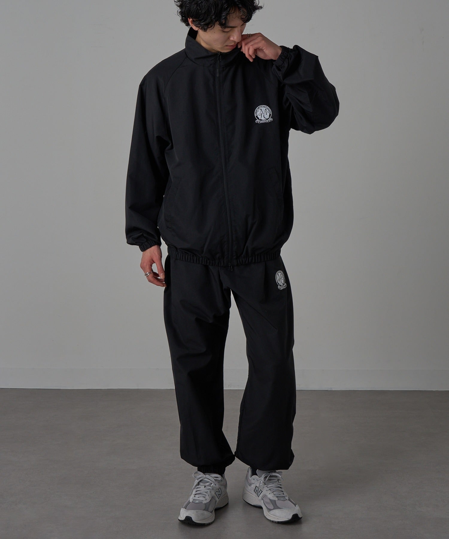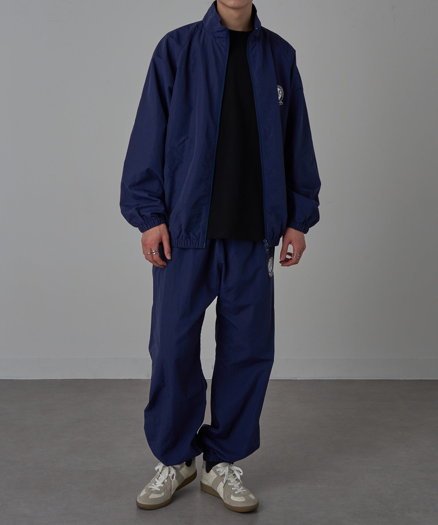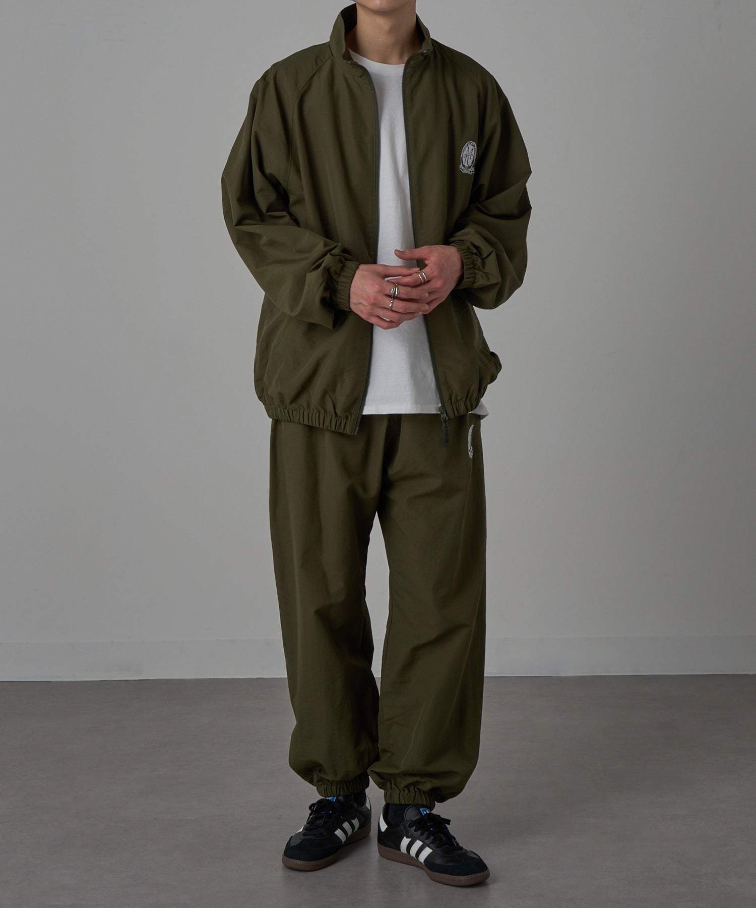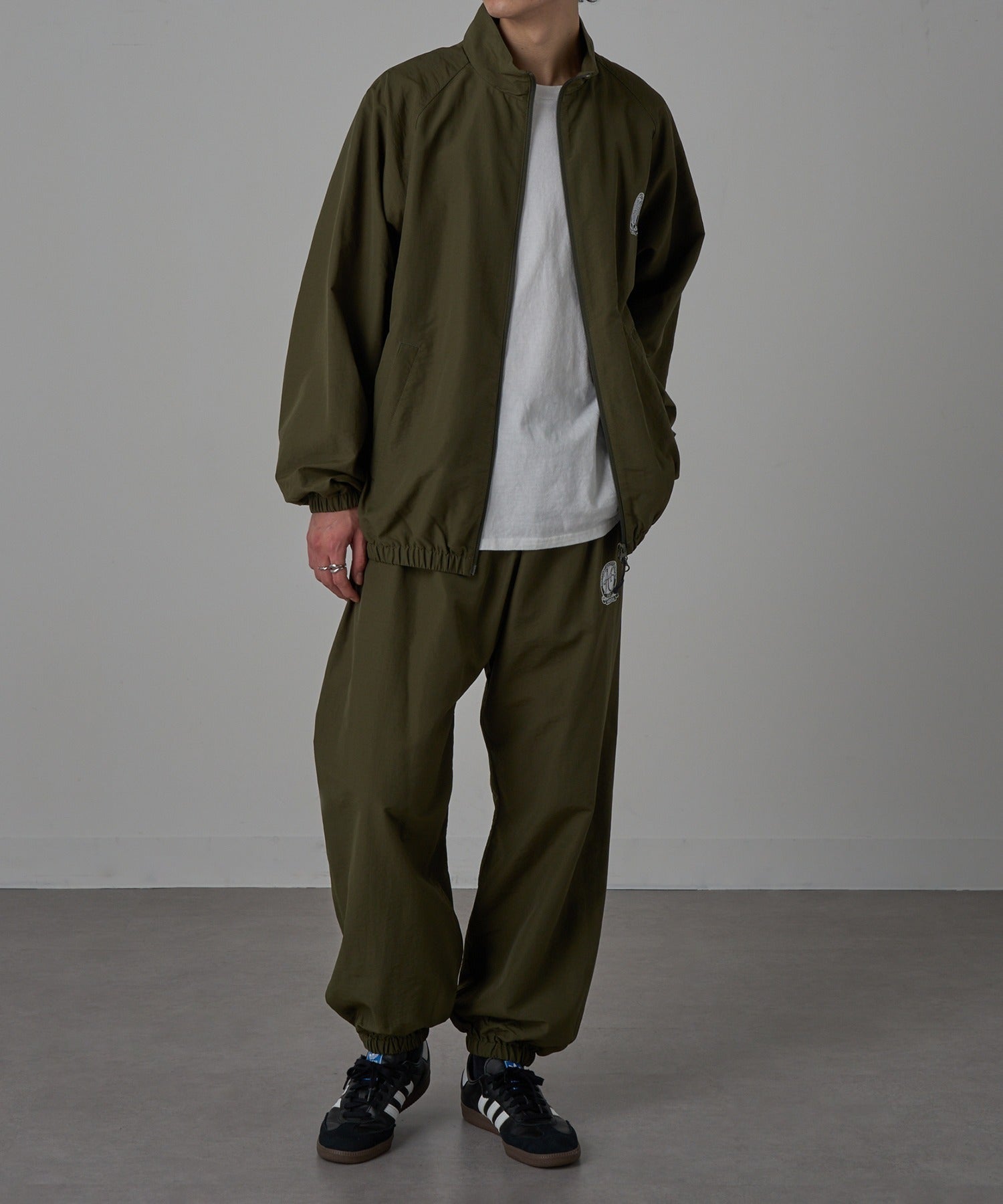 ・同じシリーズのナイロントラックパンツを合わせて、統一感のあるスタイリングに。