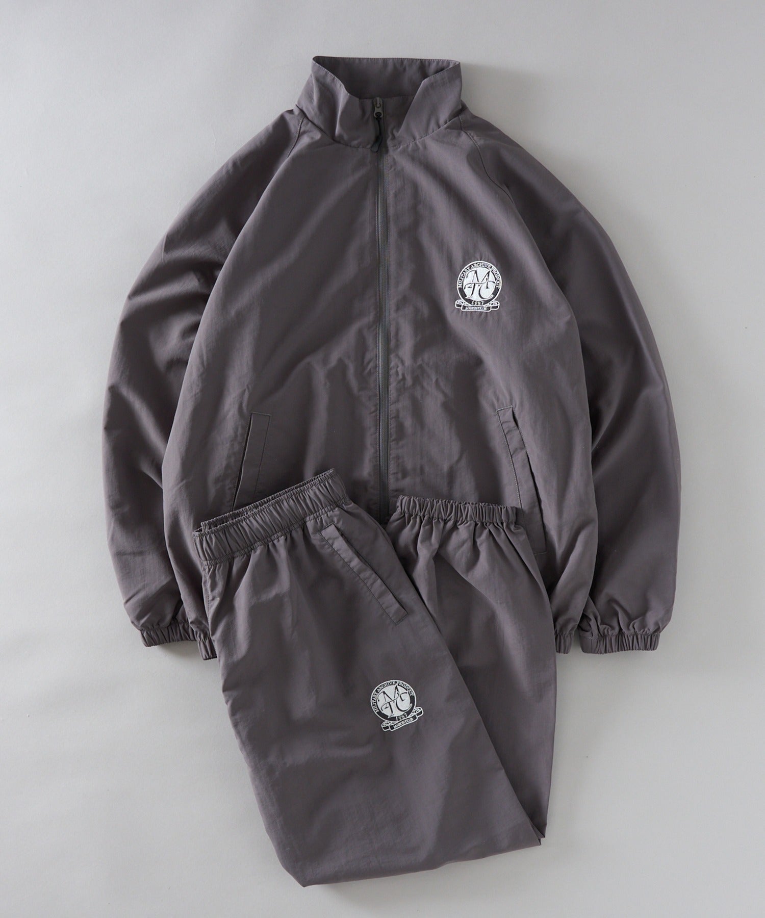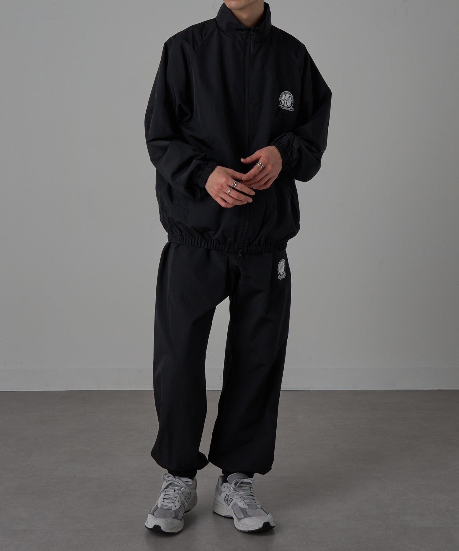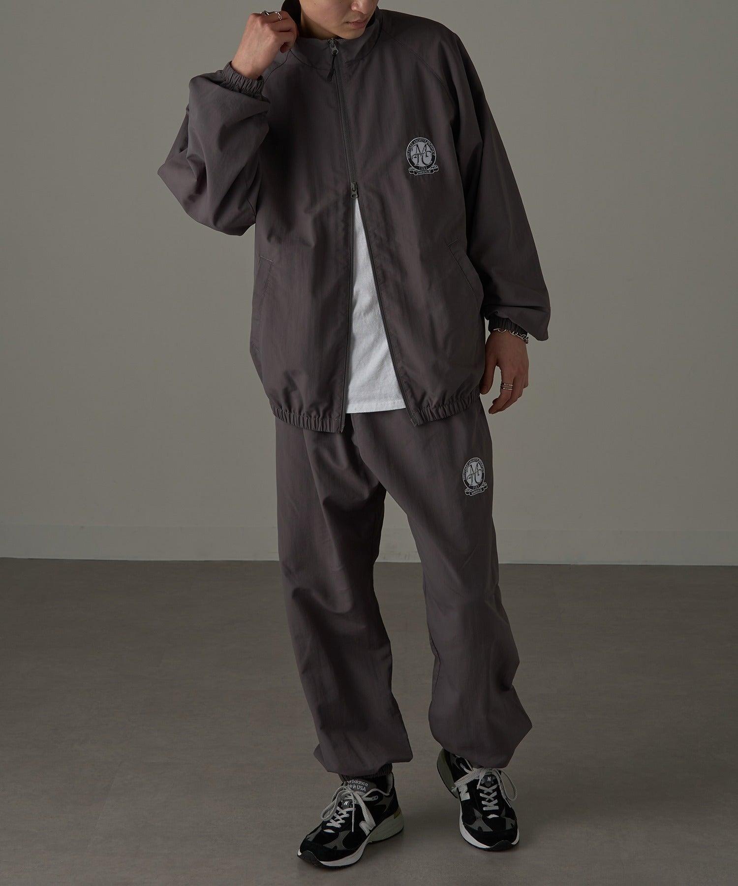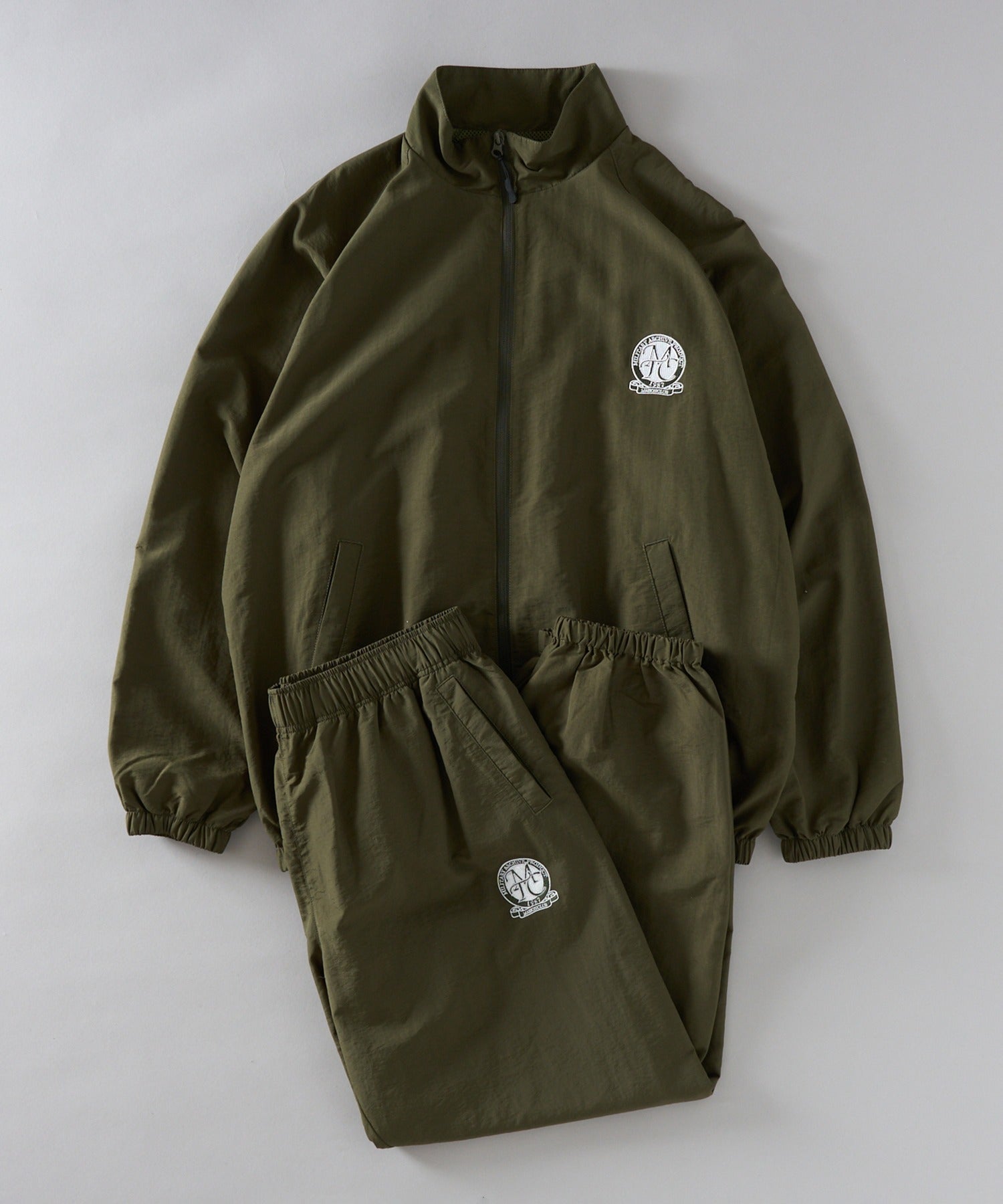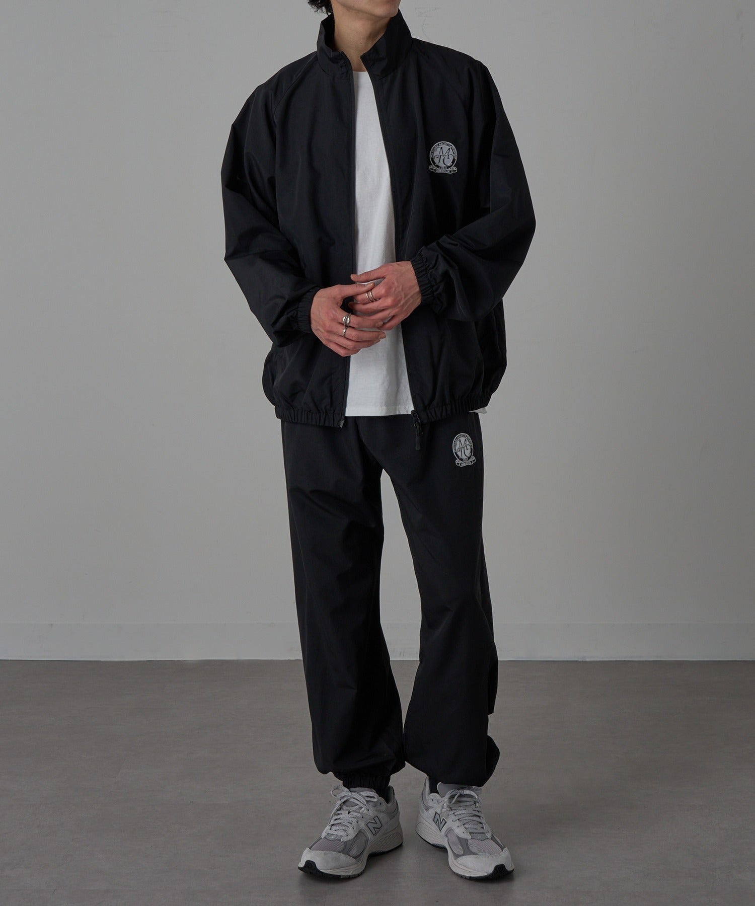 ・同じシリーズのナイロントラックパンツを合わせて、統一感のあるスタイリングに。