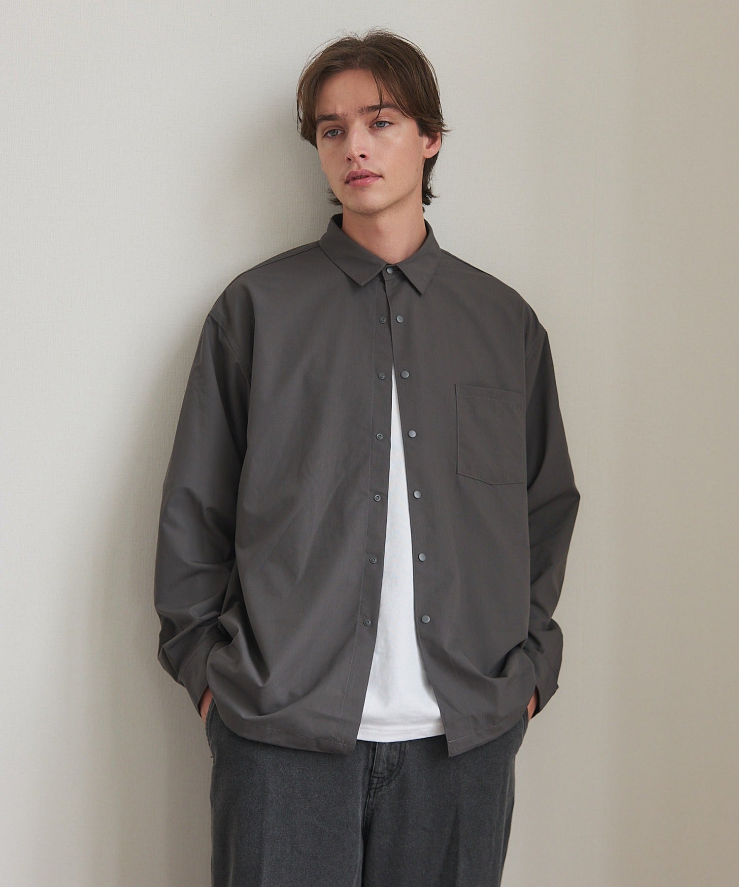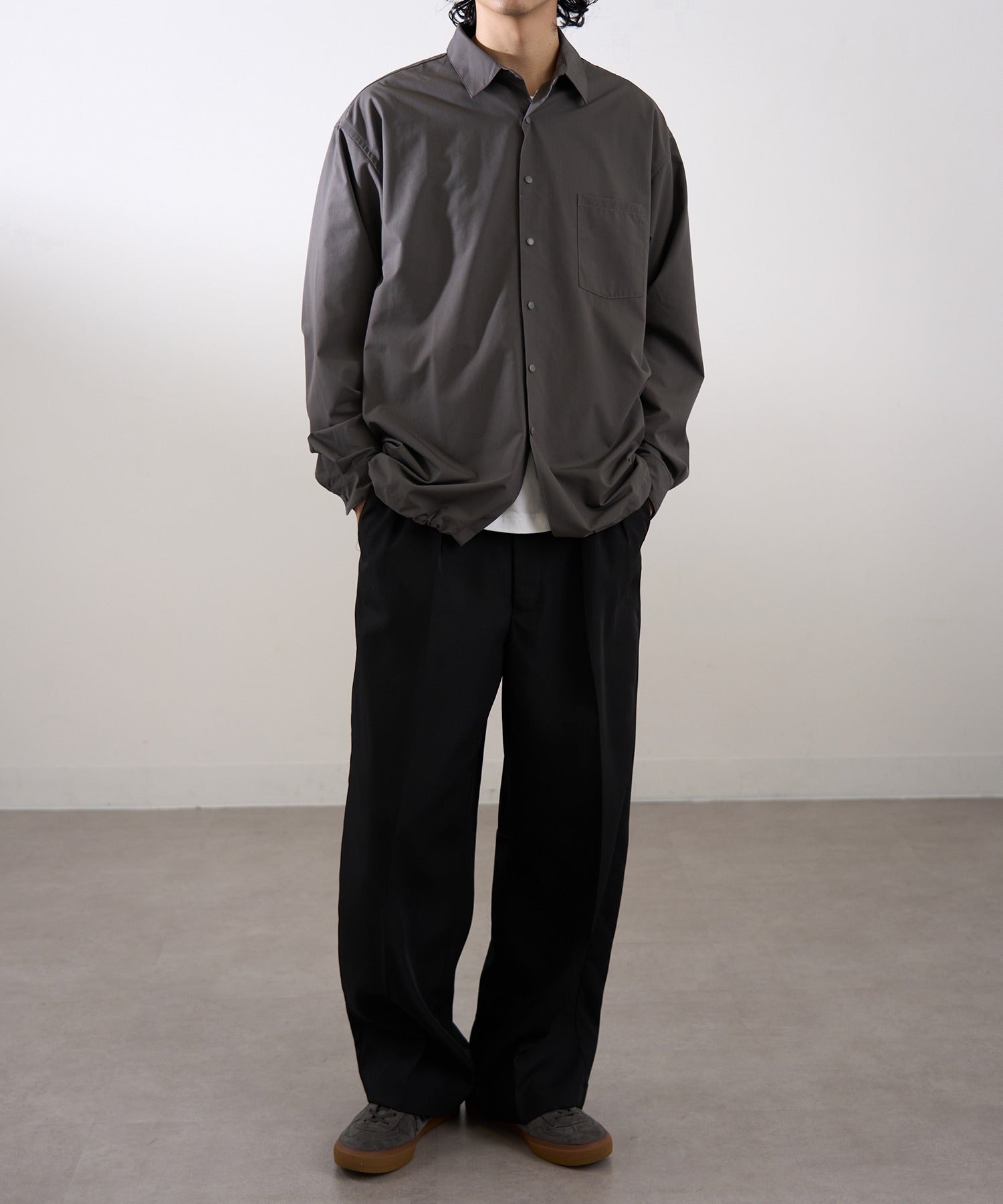 シャツのように羽織れて、ジャケットとしても成立する汎用性の高い一着。