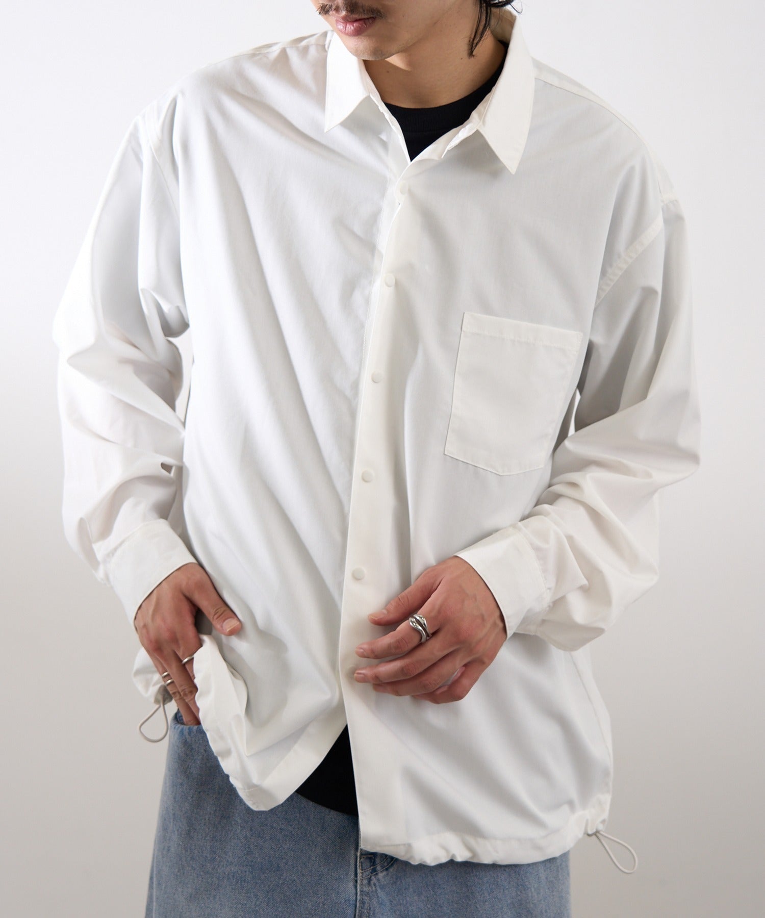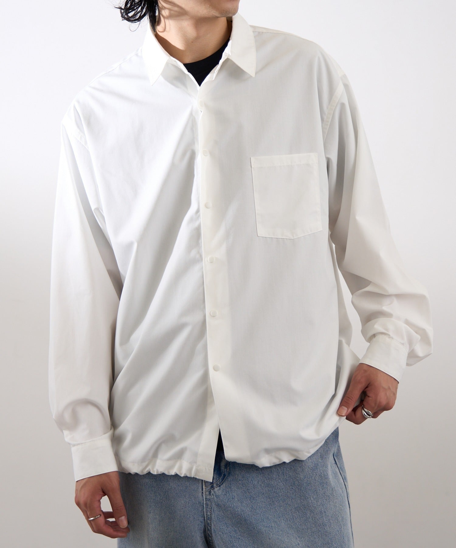 裾にはドローコードを設け、着丈とシルエットの調整が可能。