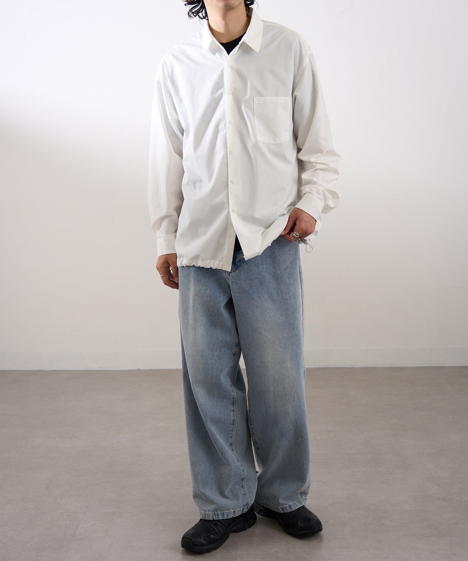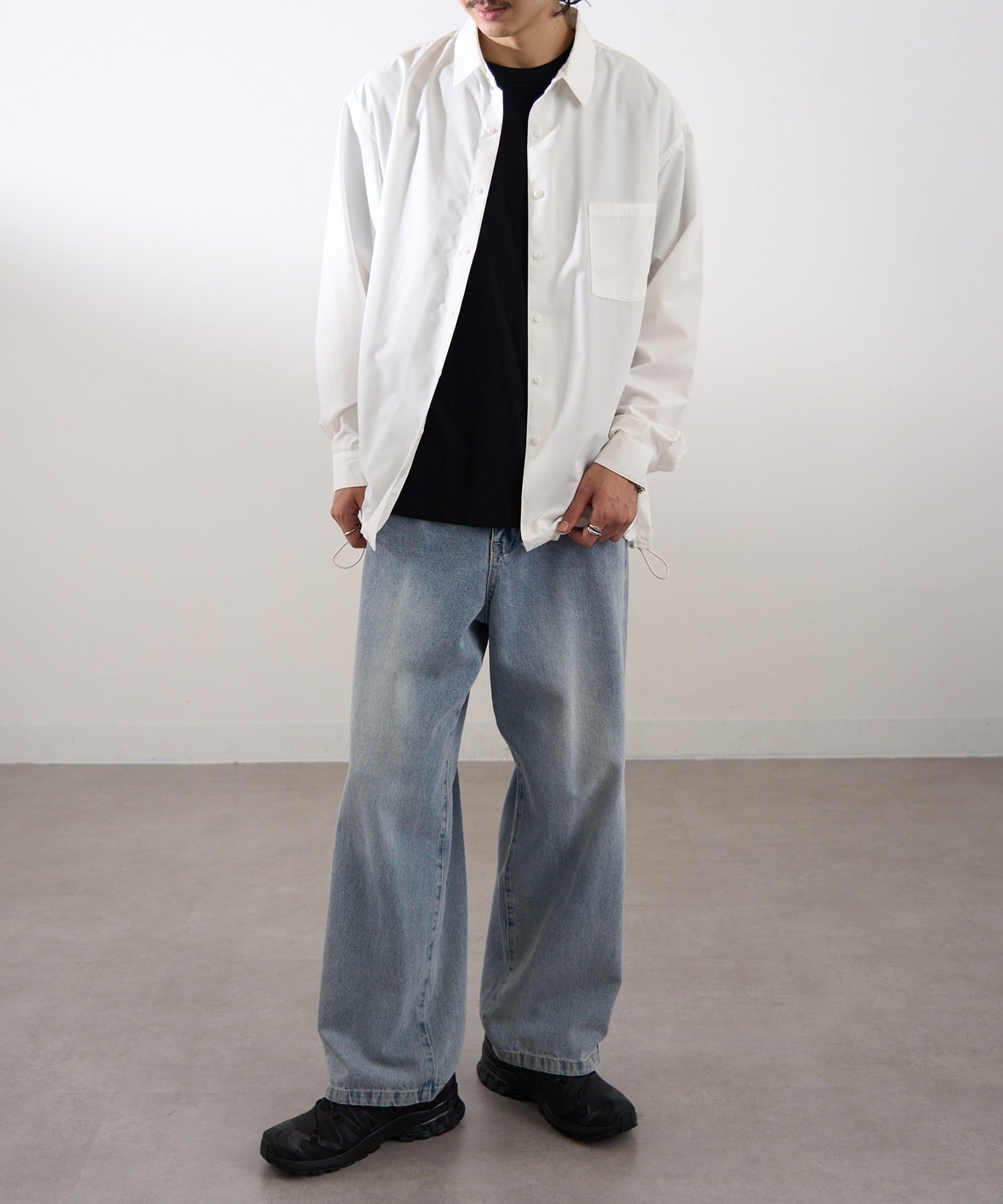 身幅をしっかりととり、中にはTシャツからスウェット・ニットまで着込むことができ、