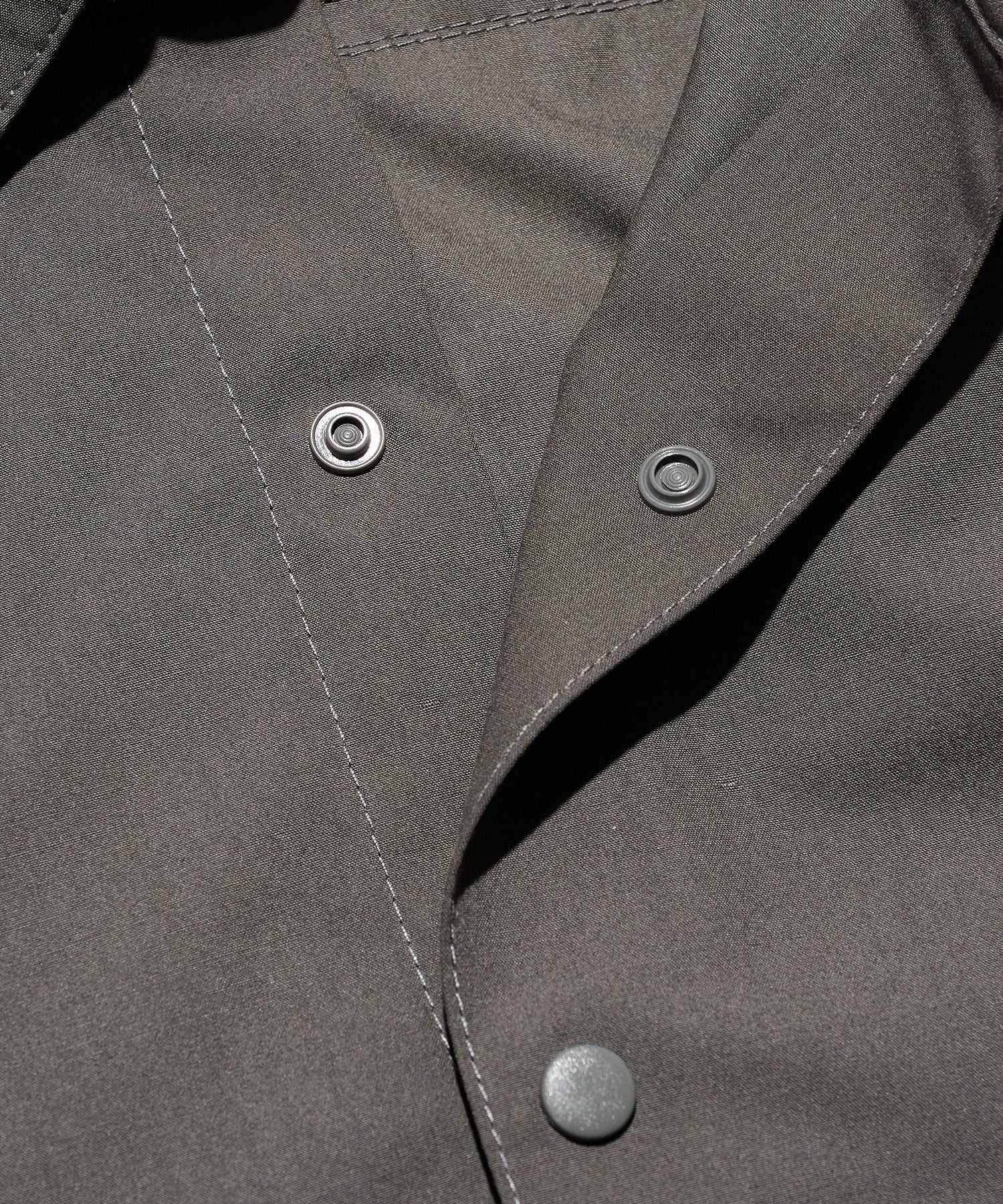 ナイロンとポリエステルを掛け合わせた軽やかな素材感で、不安定な気候下でも活躍する汎用性の高い一着です。