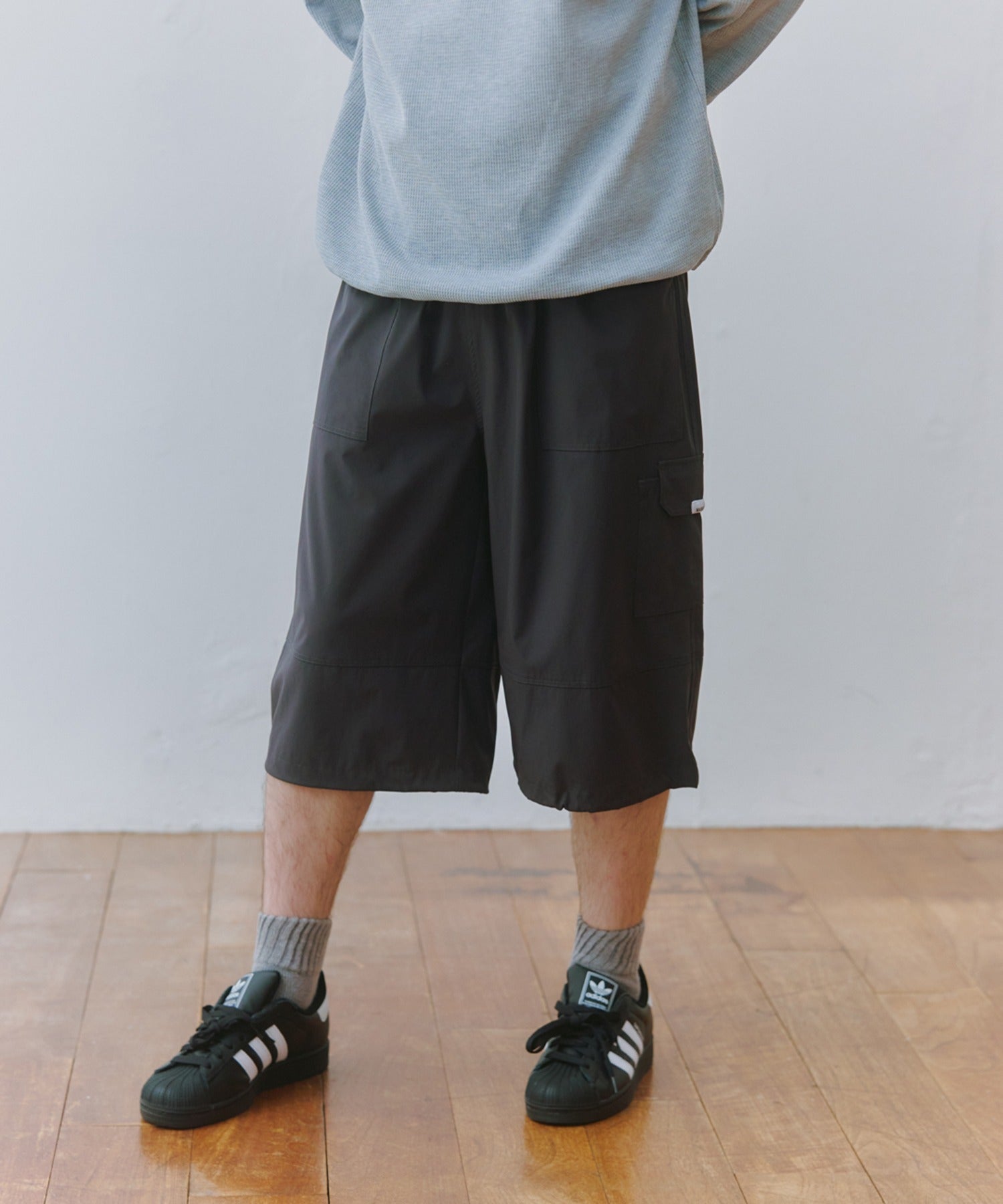 両サイドに配置されたカーゴポケットは、実用性と程よいアクセントの両立を意識しています。