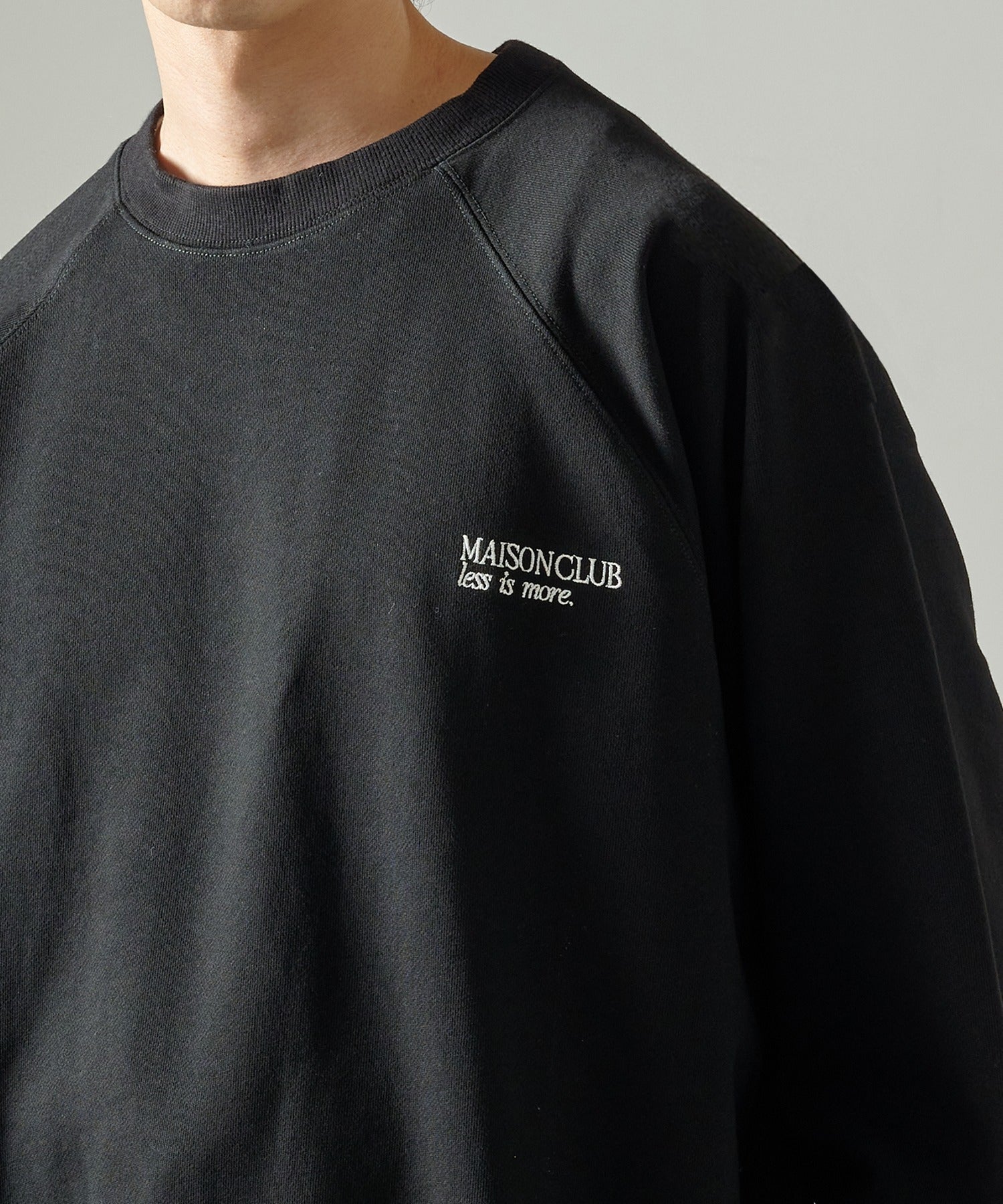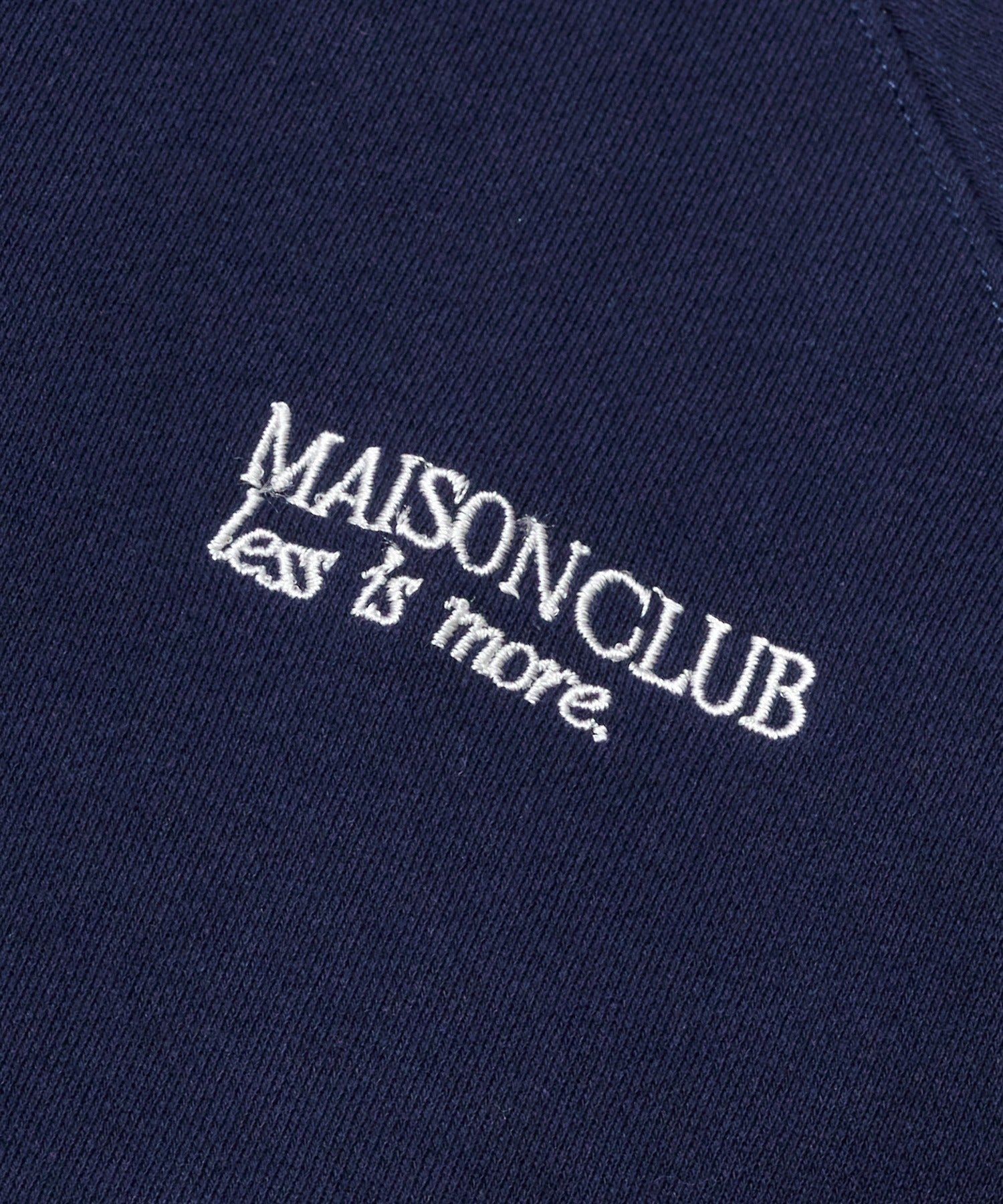胸元には、ブランドロゴ「MAISON CLUB」とフィロソフィーでもある「LESS IS MORE」の刺繍をワントーンで配し、