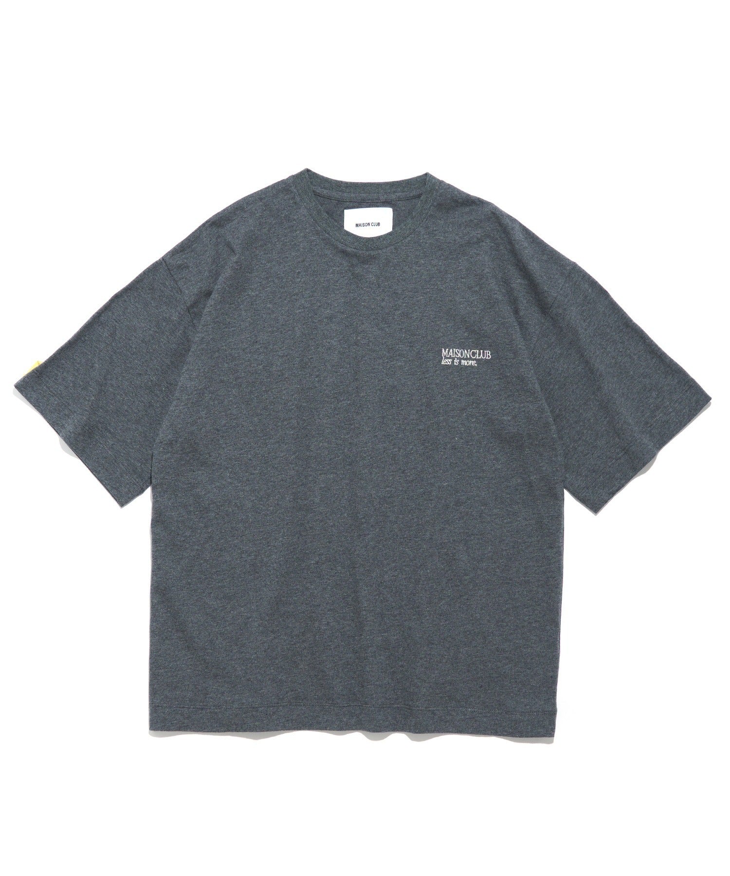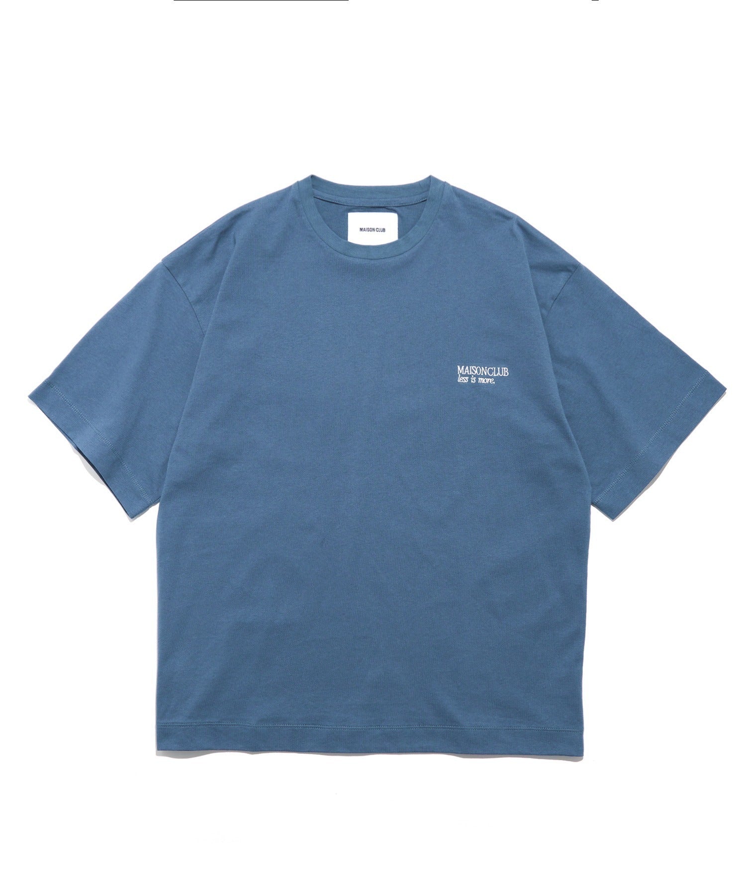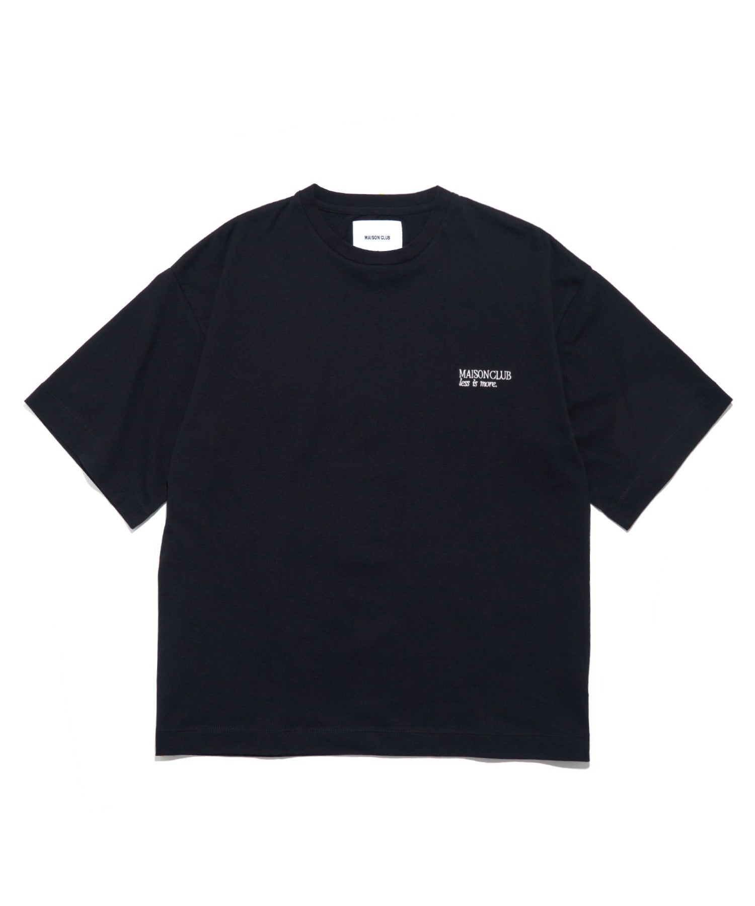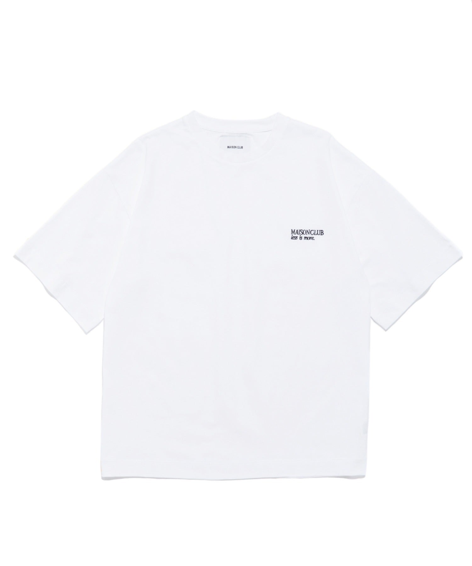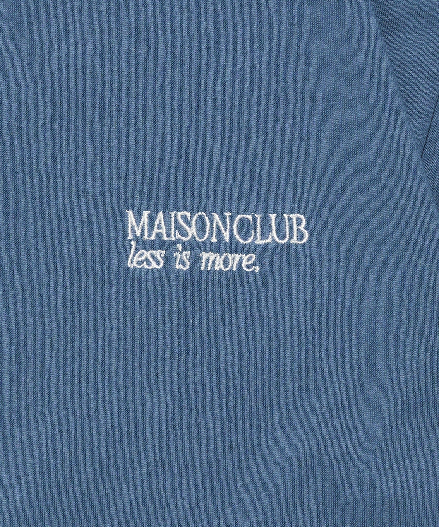 胸元にはブランドロゴ「MAISON CLUB」と、ブランドのフィロソフィーである「LESS IS MORE」の刺繍を控えめに配置。