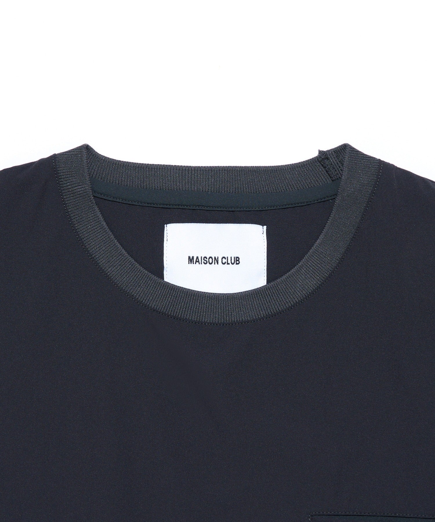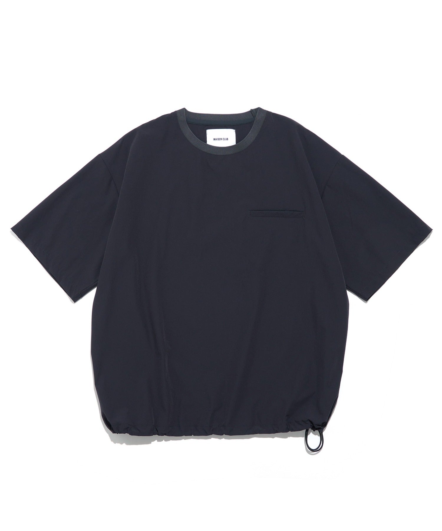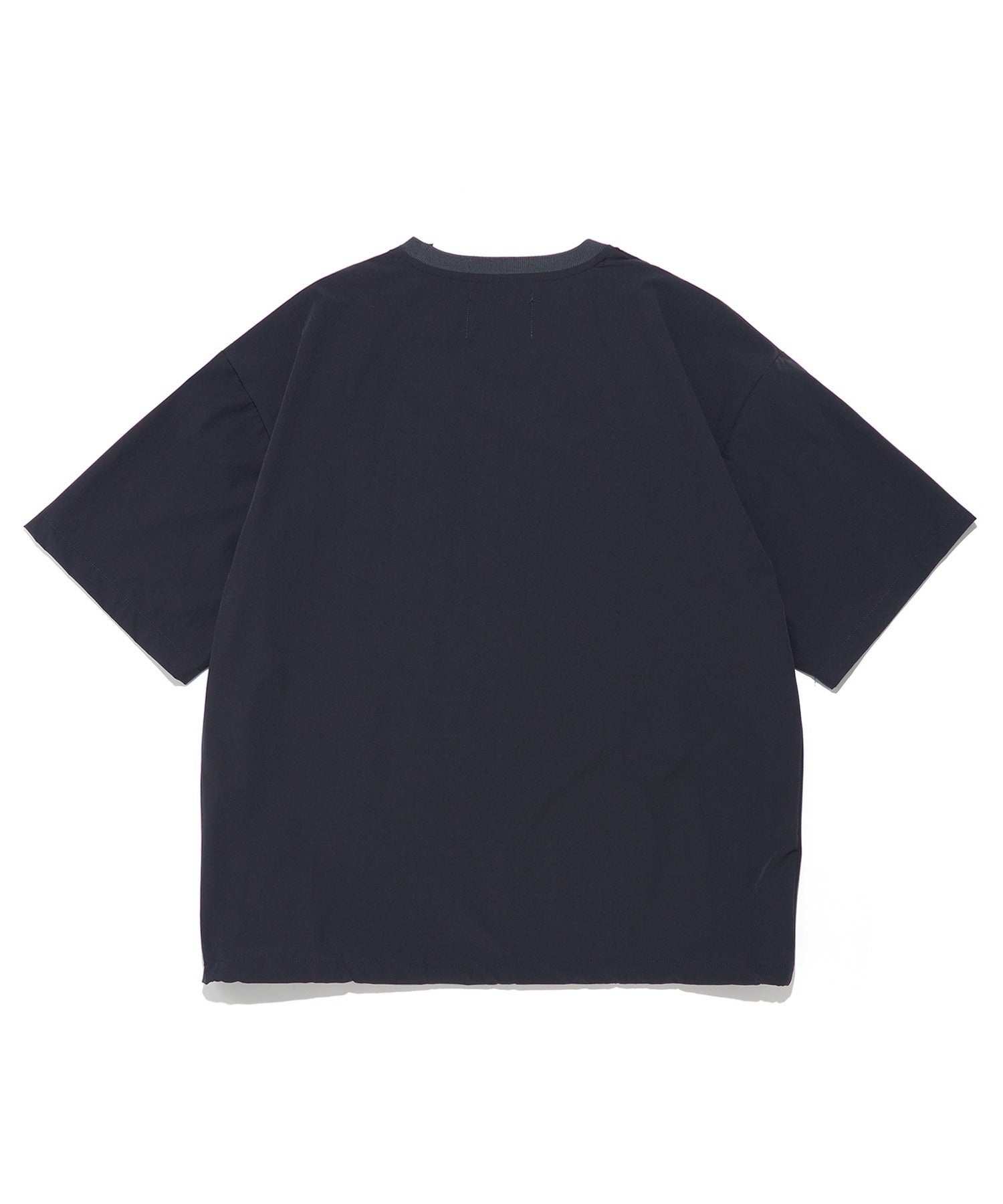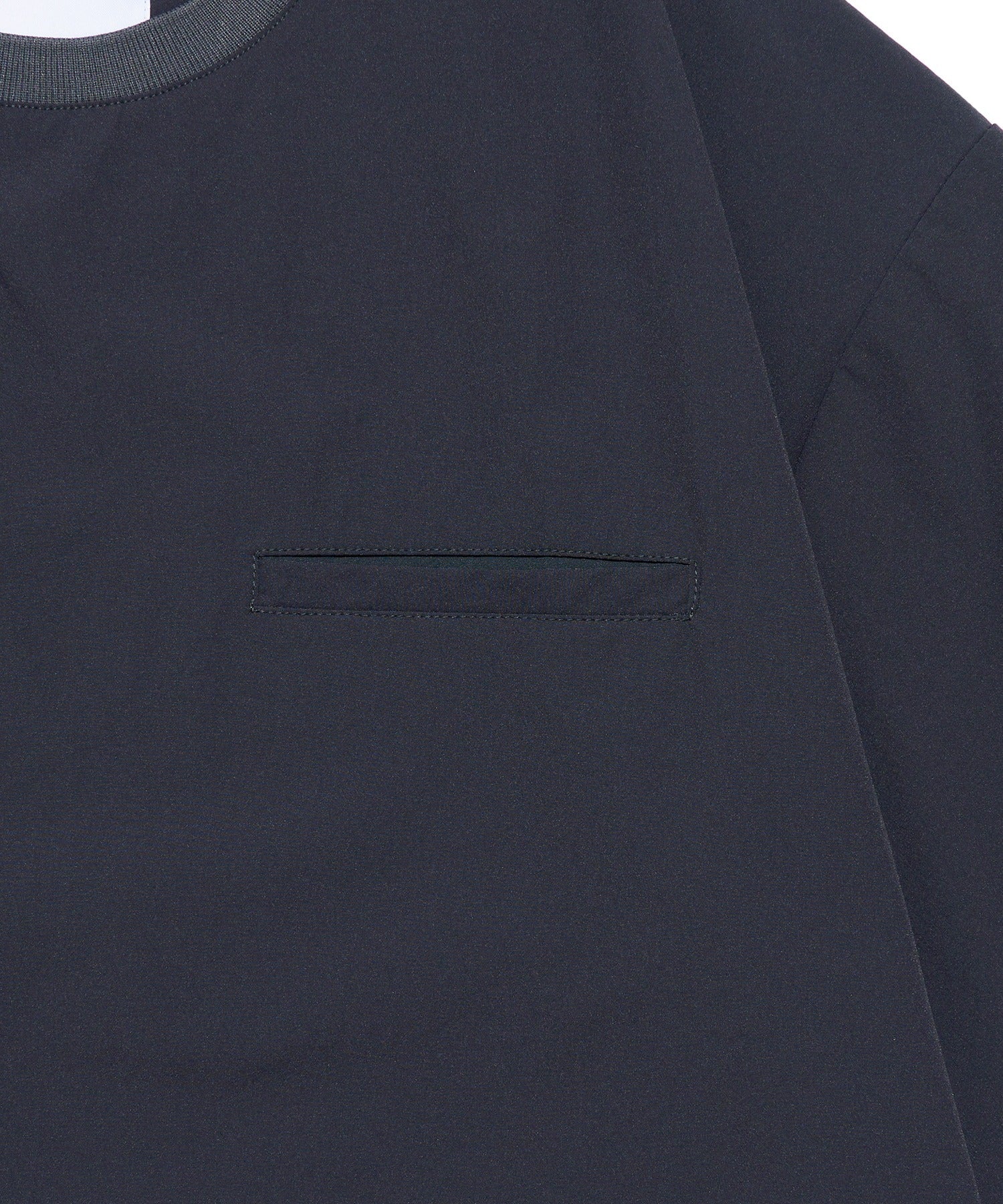 ストレッチの効いたナイロン素材を使用した、プルオーバー仕様のTシャツ。
