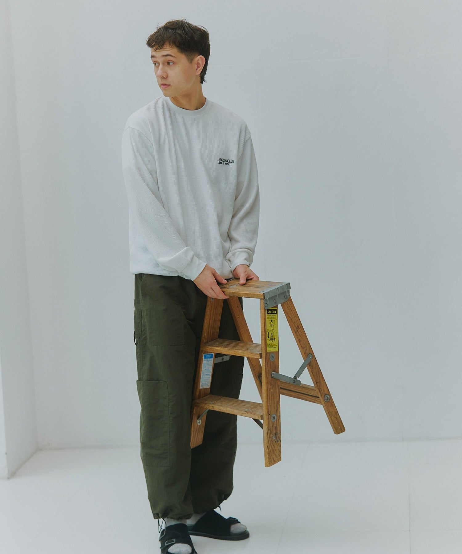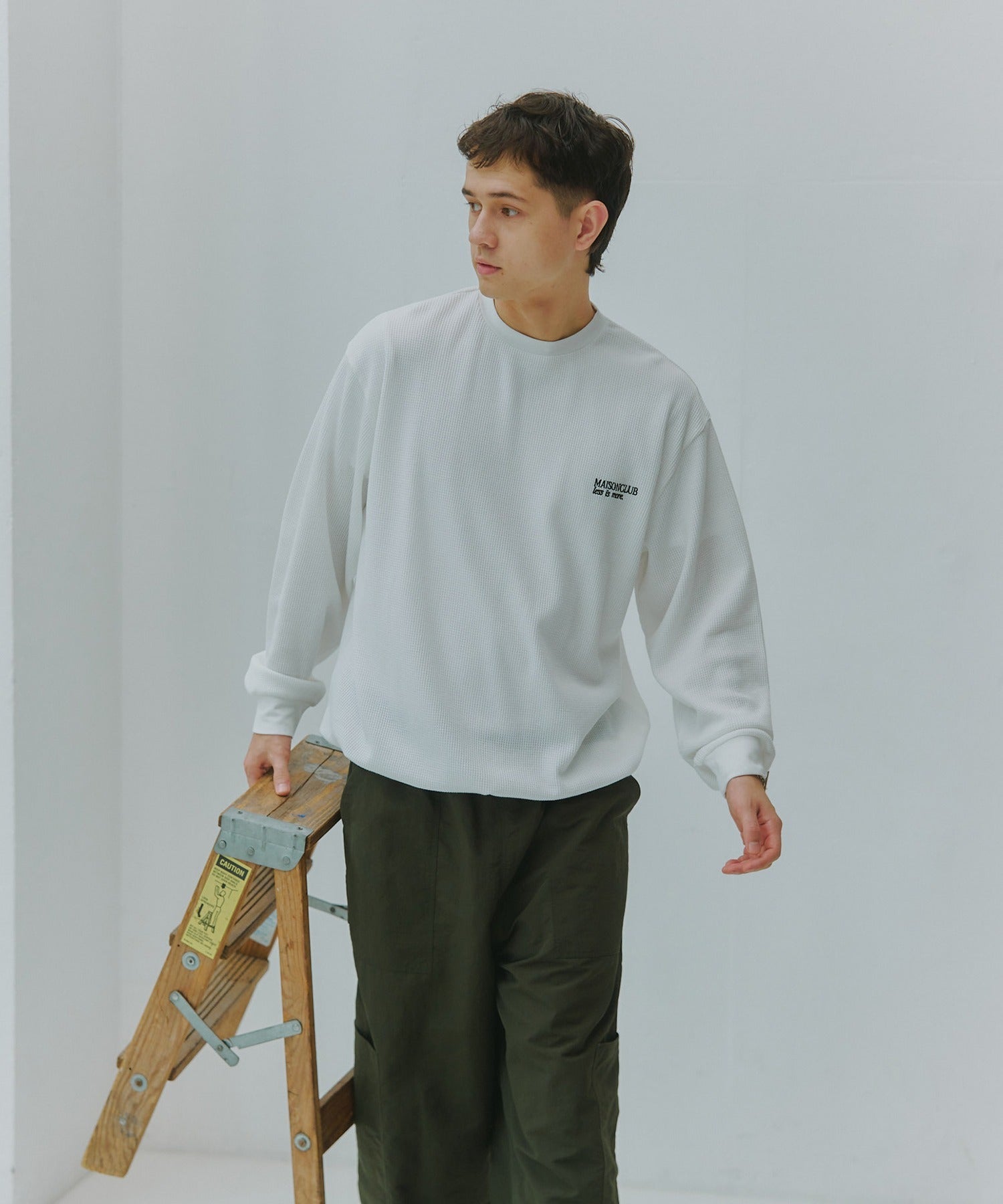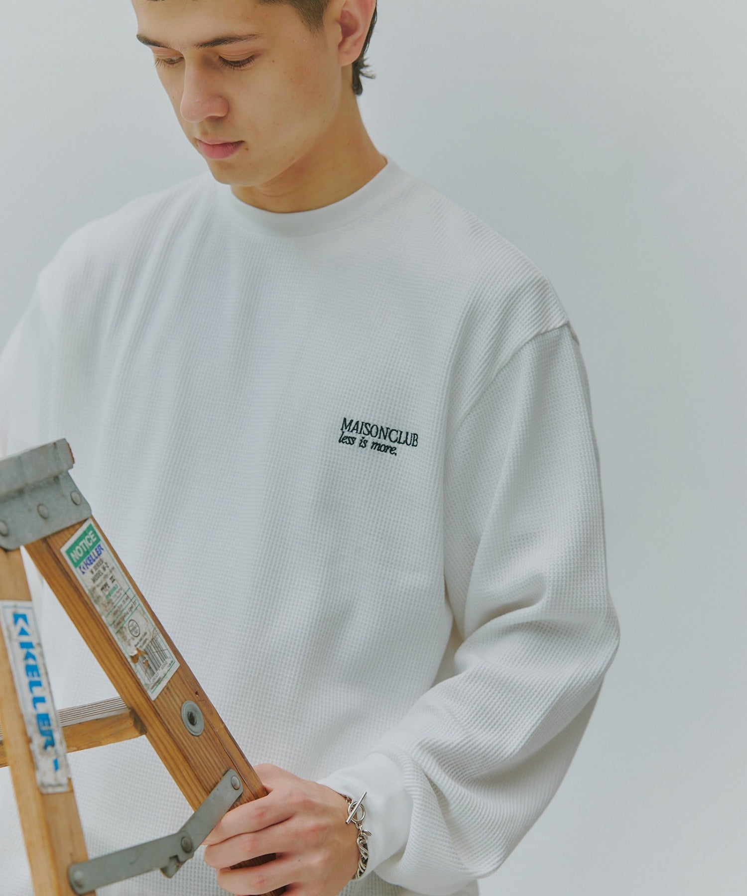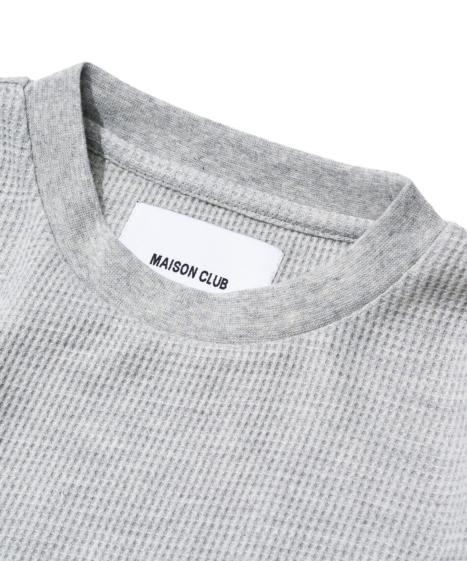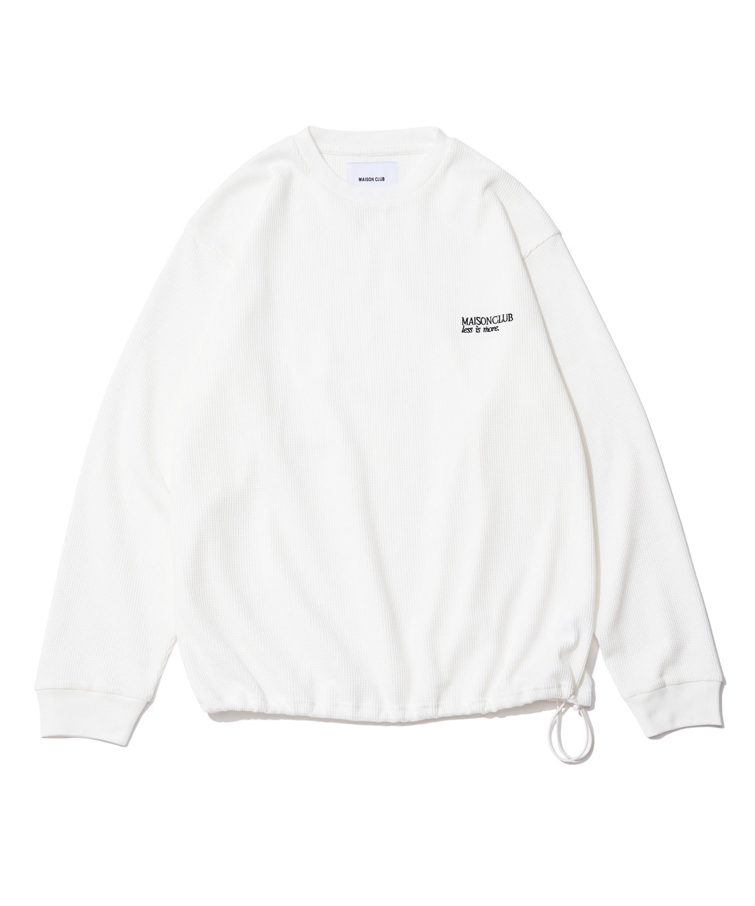 胸元にはブランドロゴ「MAISON CLUB」と、“LESS IS MORE”のメッセージを同色で刺繍。