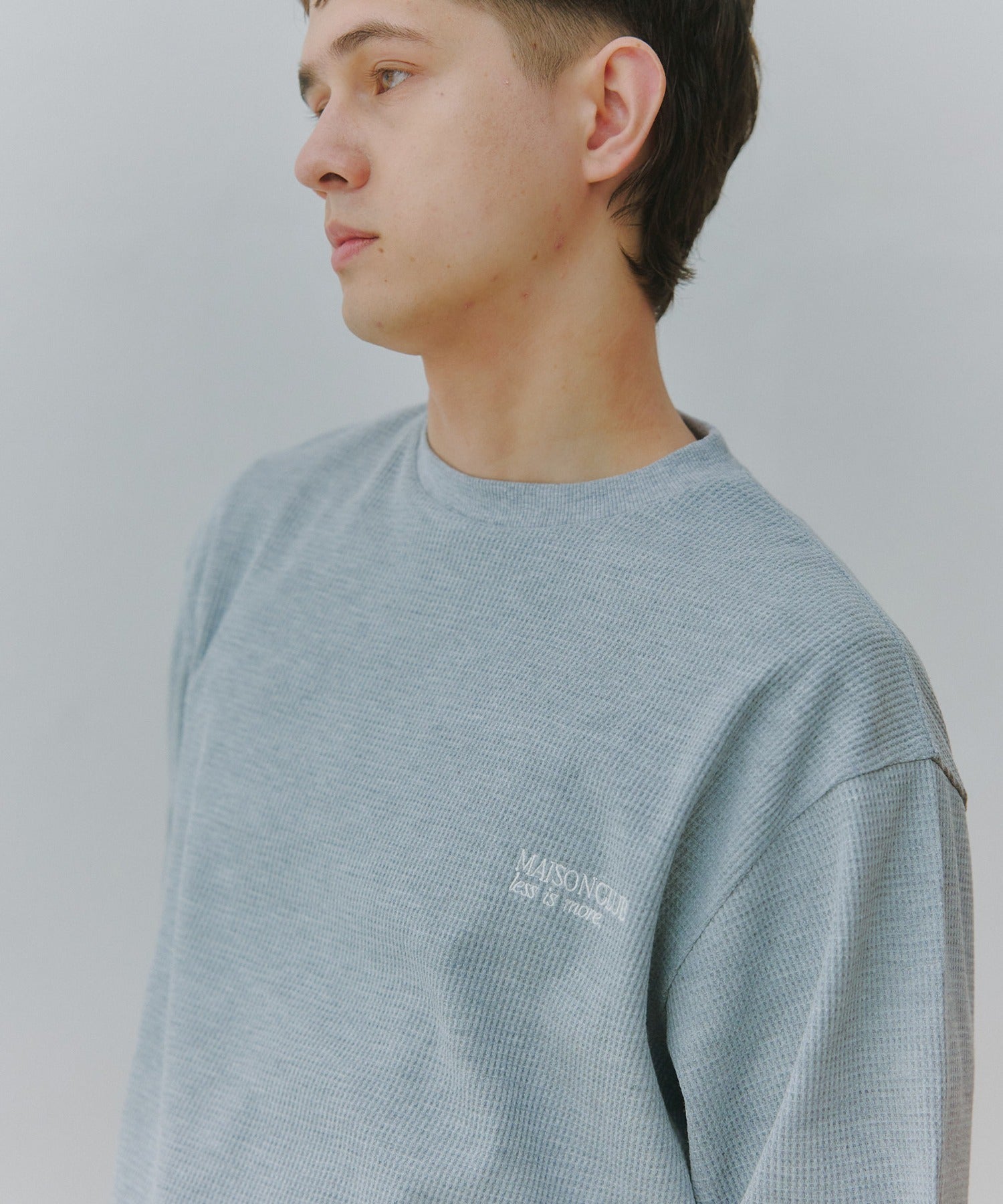 立体感のあるワッフル素材を使用した、ゆったりとしたオーバーサイズのスウェットシャツ。